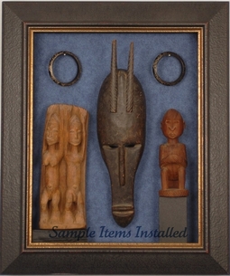 If you’ve ever journeyed into exotic lands or that special place you’ve always wanted to go, then we have the answer. The Special Travel Display Case is the ultimate keepsake memories box. Its Gallery style wood frame with gold leaf accents intrigue the viewer and draw attention to your items standing out against the deep blue patterned backing. This is an exceptional shadowbox case in every sense. What’s more, factory direct savings and free shipping make it the best deal imaginable.